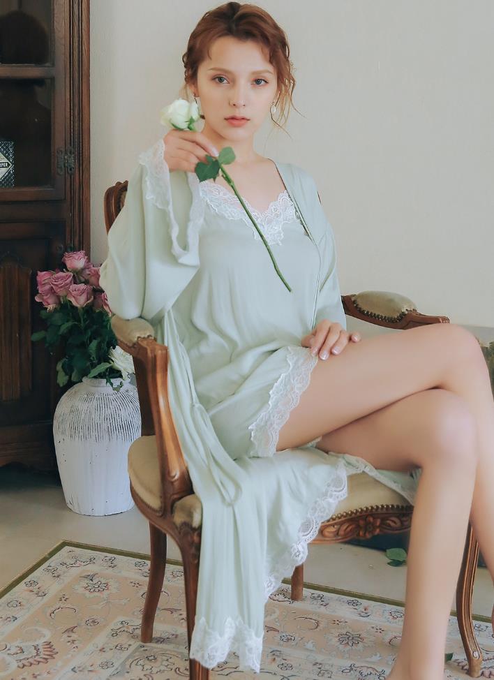 レディースパジャマ ルームウエア キャミソール&ナイトガウン2点セット キャミソールワンピースミニ丈 九分袖ナイトガウン M/L/XL/XXl 大きいサイズ 春夏秋 色柄全6タイプ キュートなルームウエア セクシーナイトウエア おしゃれ部屋着 寝巻き ねまき