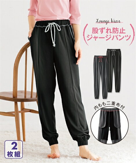 パジャマ ルームウェア (LL/3L) 大きいサイズ 股ずれ防止 ジャージ 裾しぼり ルームパンツ2枚組 ニッセン nissen 部屋着 春 夏 秋 スポーツウエア ジョギング ウォーキング 春夏