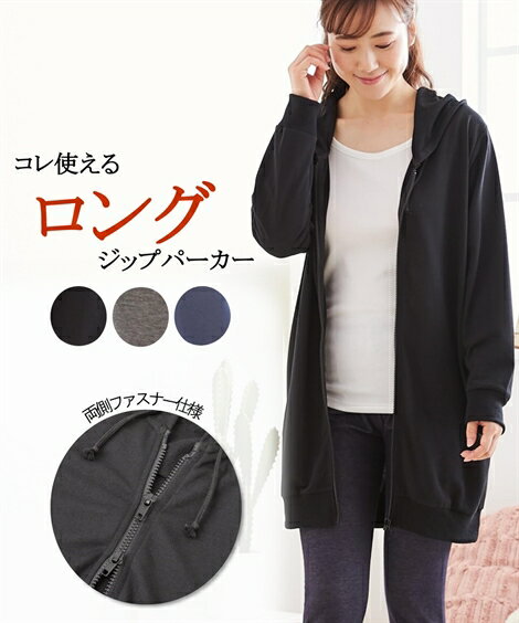 パジャマ ルームウェア (8L-10L) 大きいサイズ ミニ裏毛 薄手 ルーム ロングジップパーカー ニッセン nissen ロング丈 はおりもの レディース ルームウエア 春夏 テレワーク 在宅 おうち時間