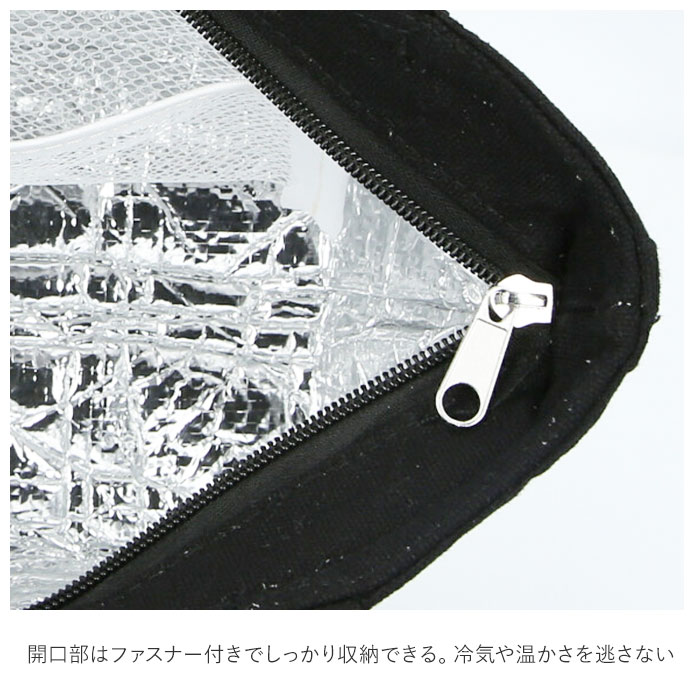 ・内側はアルミシートで、保冷剤ポケットもついてるので保冷、保温効果も長く続く。