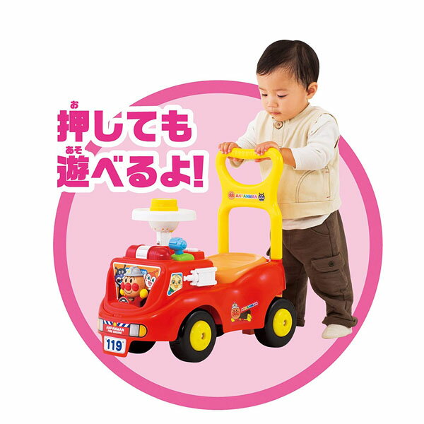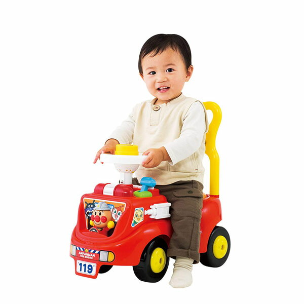 ・タイヤと連動して正面のアンパンマンレリーフが左右に動きます。