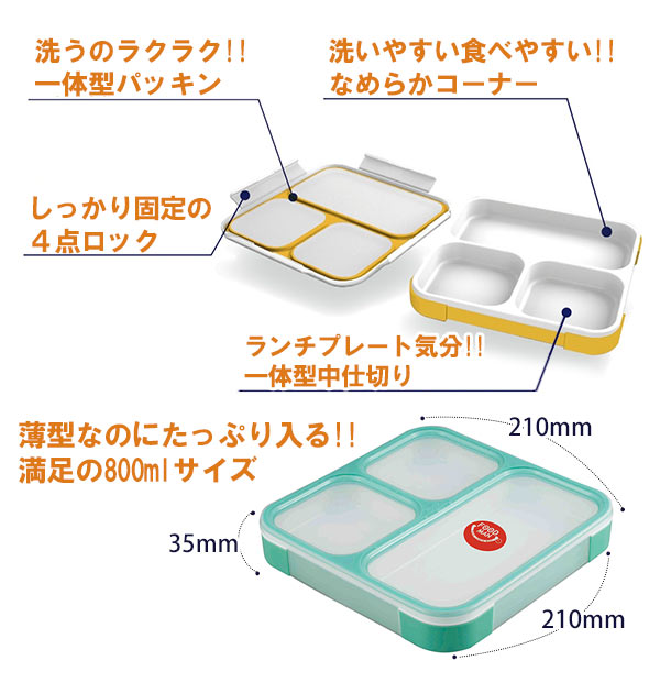弁当箱 フードマン FOODMAN 薄型 お弁当箱 薄型弁当箱 ランチボックス 通販 800ml 男子 メンズ 1段 大人 コンパクト スリム 女子 食洗機対応 電子レンジok 大容量 お弁当グッズ 16458 4571347 7200503