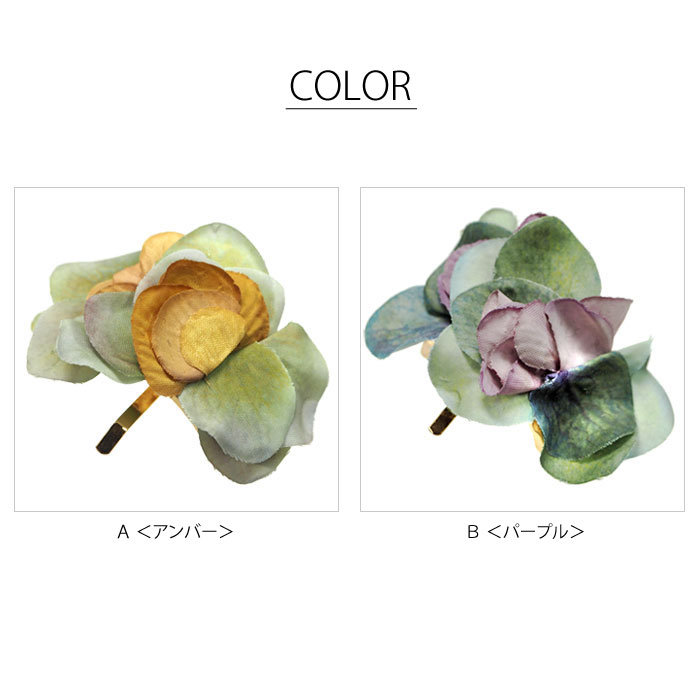 サイズ 画像参照 デザイン A<アンバー>・B<パープル> 入数 1個入り 材質 ポリエステル・亜鉛合金 原産国 日本 知っておいて頂きたいこと ※ハンドメイドのため、サイズやデザイン、造花パーツの色味などに個体差がある場合がございますが通常品として販売します。