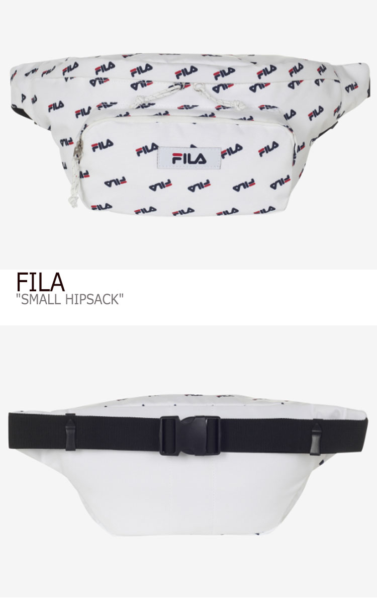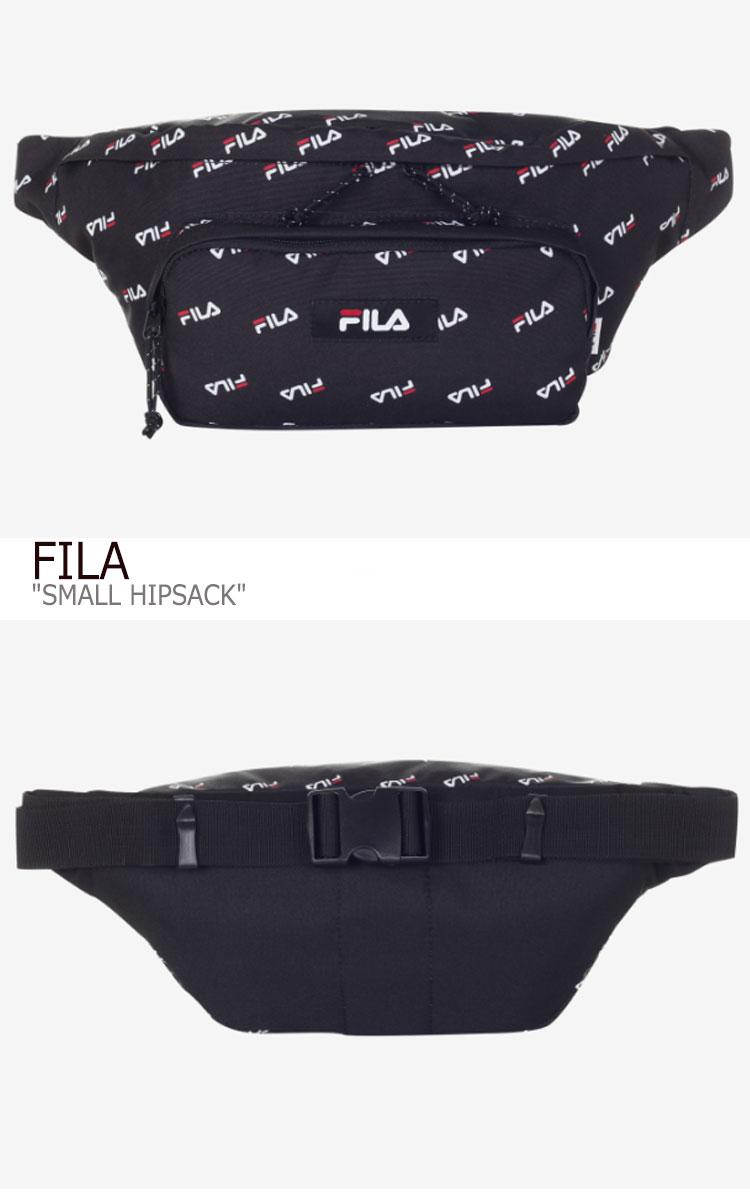 商品紹介 フィラ ボディバッグ FILA メンズ レディース ALLOVER PATTERN HIPSACK オールオーバー パターン ヒップサック BLACK ブラック WHITE ホワイト FS3BCC5315X バッグ 前と後ろにポケットが付いている収納力のあるボディバッグ FILAロゴのオールオーバーパターンがポイントです。